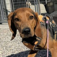 Lil Anne is a 1.5-year-old, 37 lb black and tan coonhound. Sweet, gentle, and ready for her forever home!