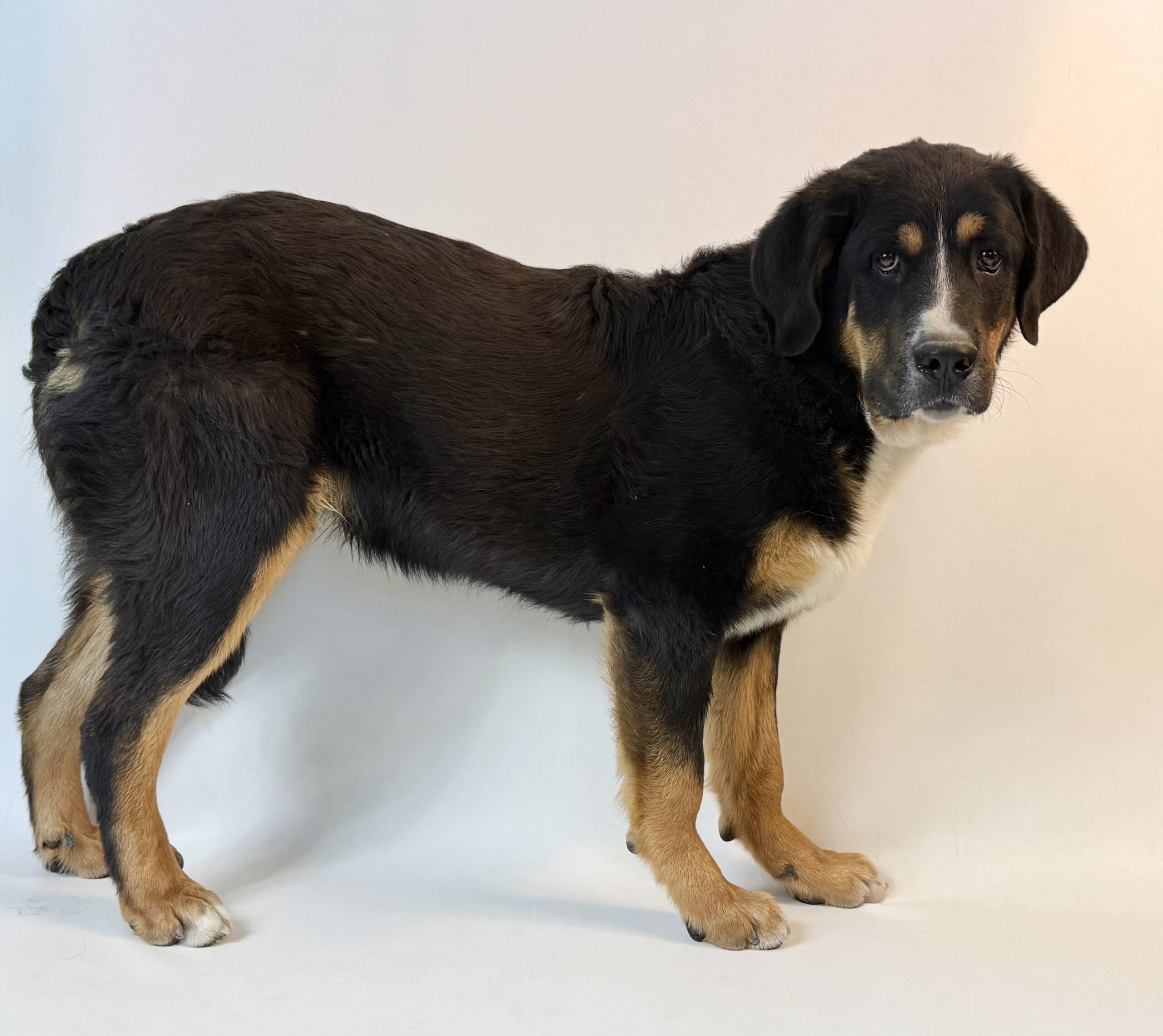 Andy is a 1-year-old Greater Swiss Mountain dog mix who’s showing incredible resilience and heart. He came from a hoarding situation with 50 other dogs, and like the nearly 30 dogs we've helped from the same case, he's making wonderful progress.