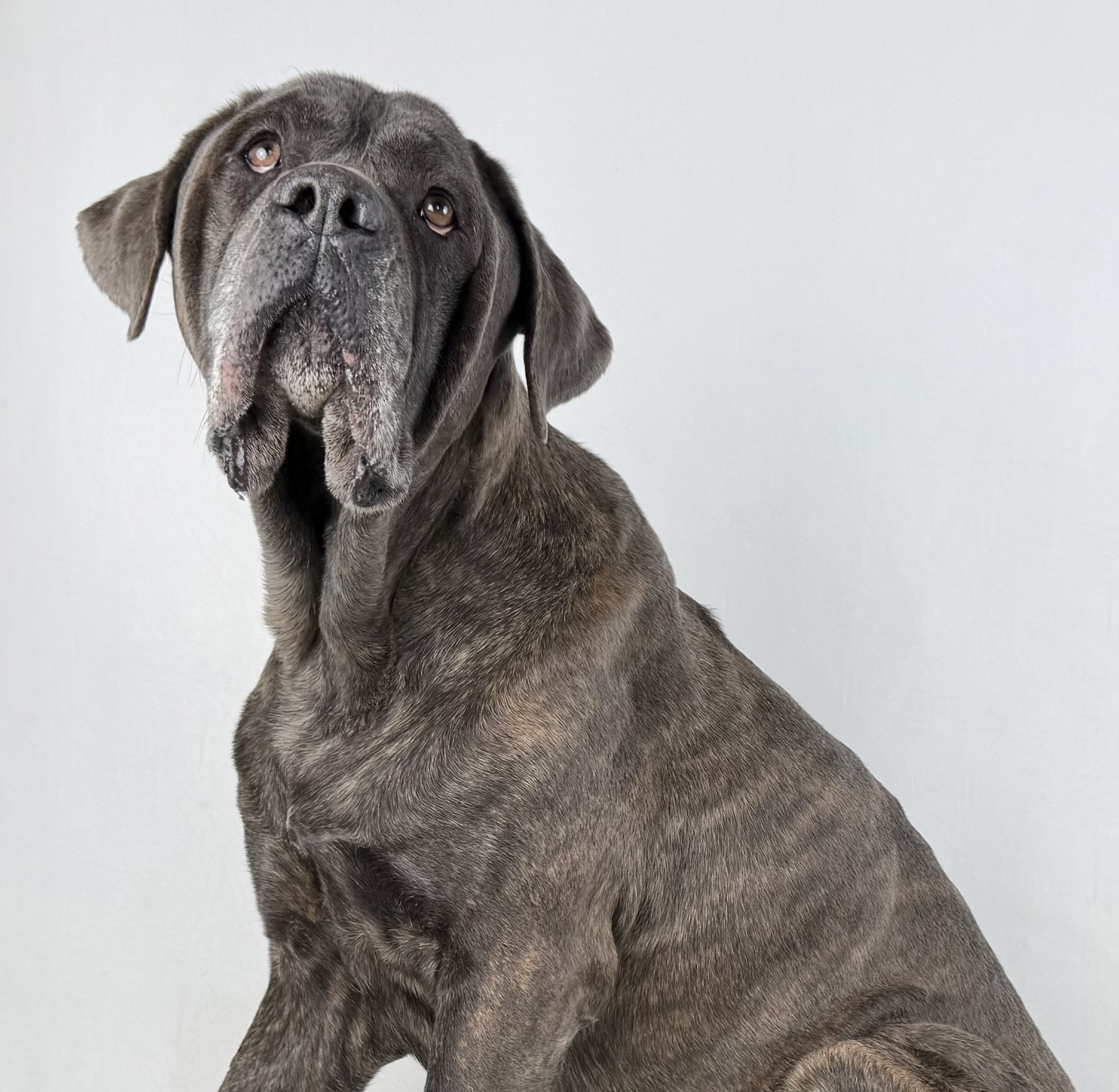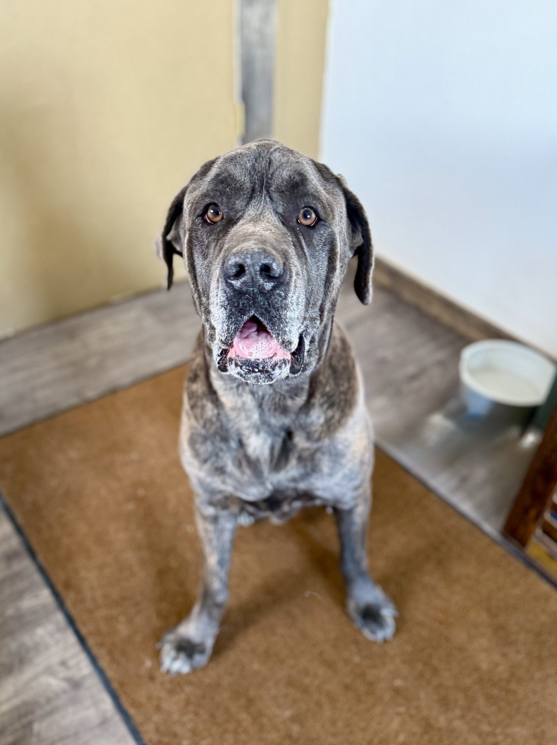Being a Cane Corso, Beau does have a protective nature, he can appear intimidating with his loud bark and all that good slobber. He listens well to a confident leader and does well with positive reinforcement. Beau takes treats very calmly and would love nothing more than following his human around all day.