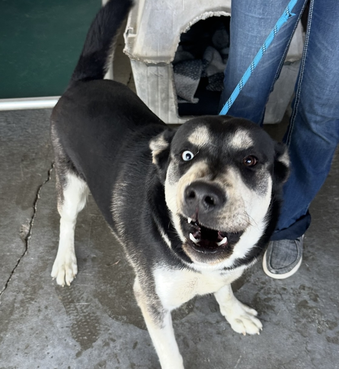 Buck is about 80 pounds and just under a year old, so he’s still very much a puppy at heart. He’s full of playful puppy energy, balanced perfectly with an equal amount of puppy love. Friendly and social, Buck does great with other dogs and animals. He’s not aggressive toward cats—he’s simply curious and a bit unsure since he hasn’t had much experience with them yet.