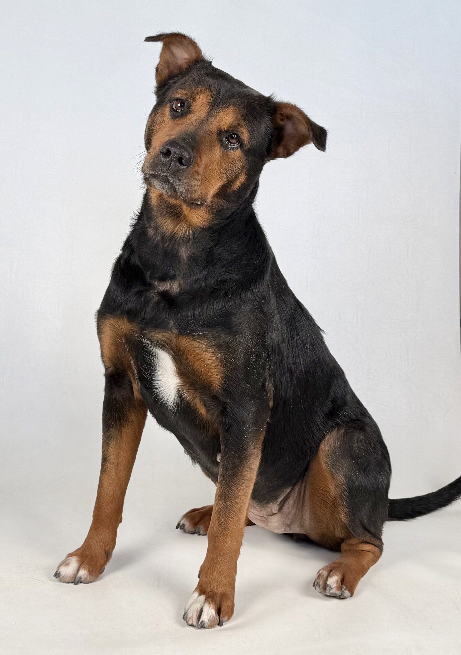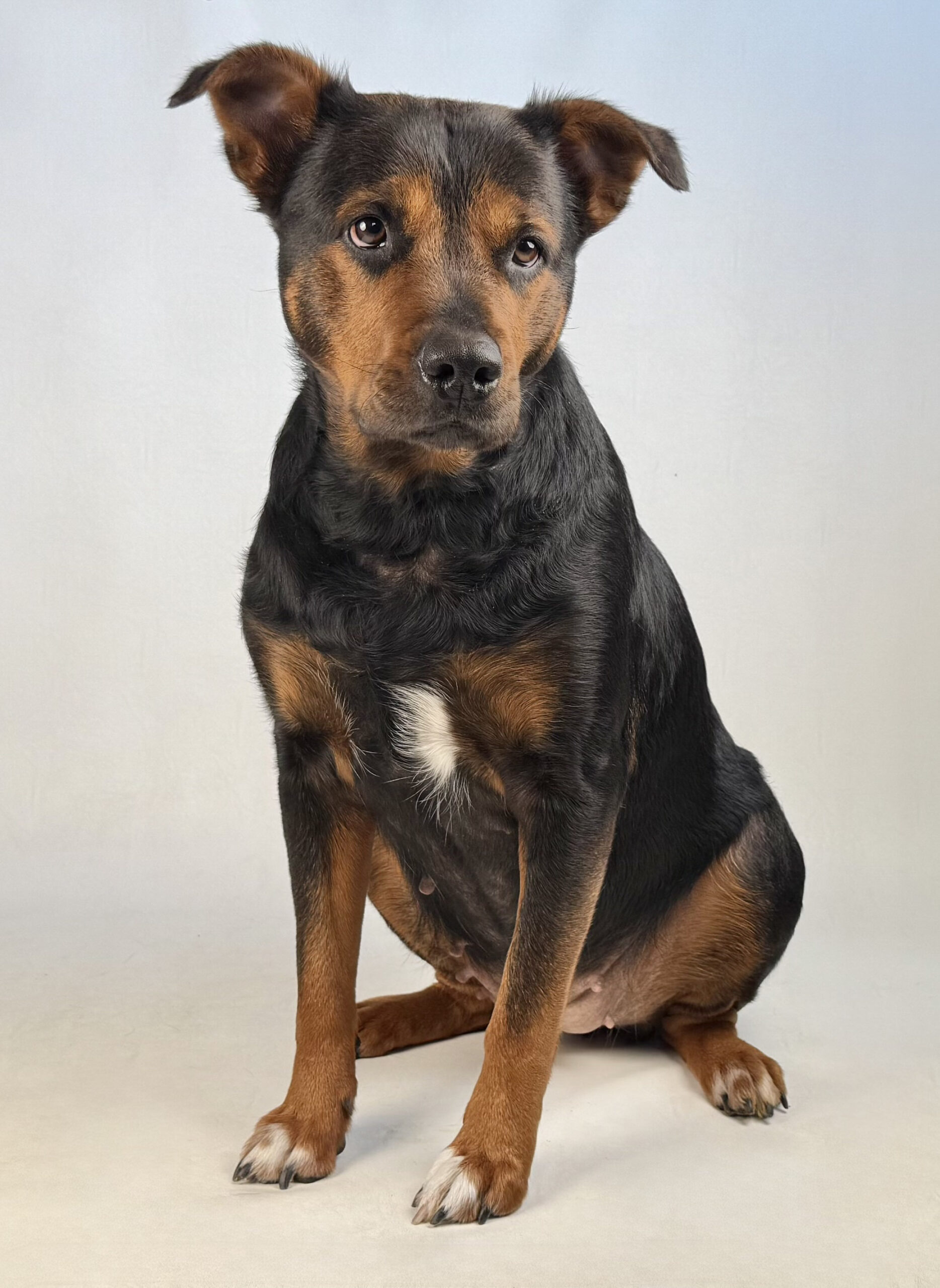 Dakota is a gentle, four-year-old Rottweiler mix with a soft heart and a timid soul. Weighing around 68 pounds (and gradually trimming down), she may look strong on the outside, but she’s a sensitive girl who needs time, patience, and understanding to show her true colors.