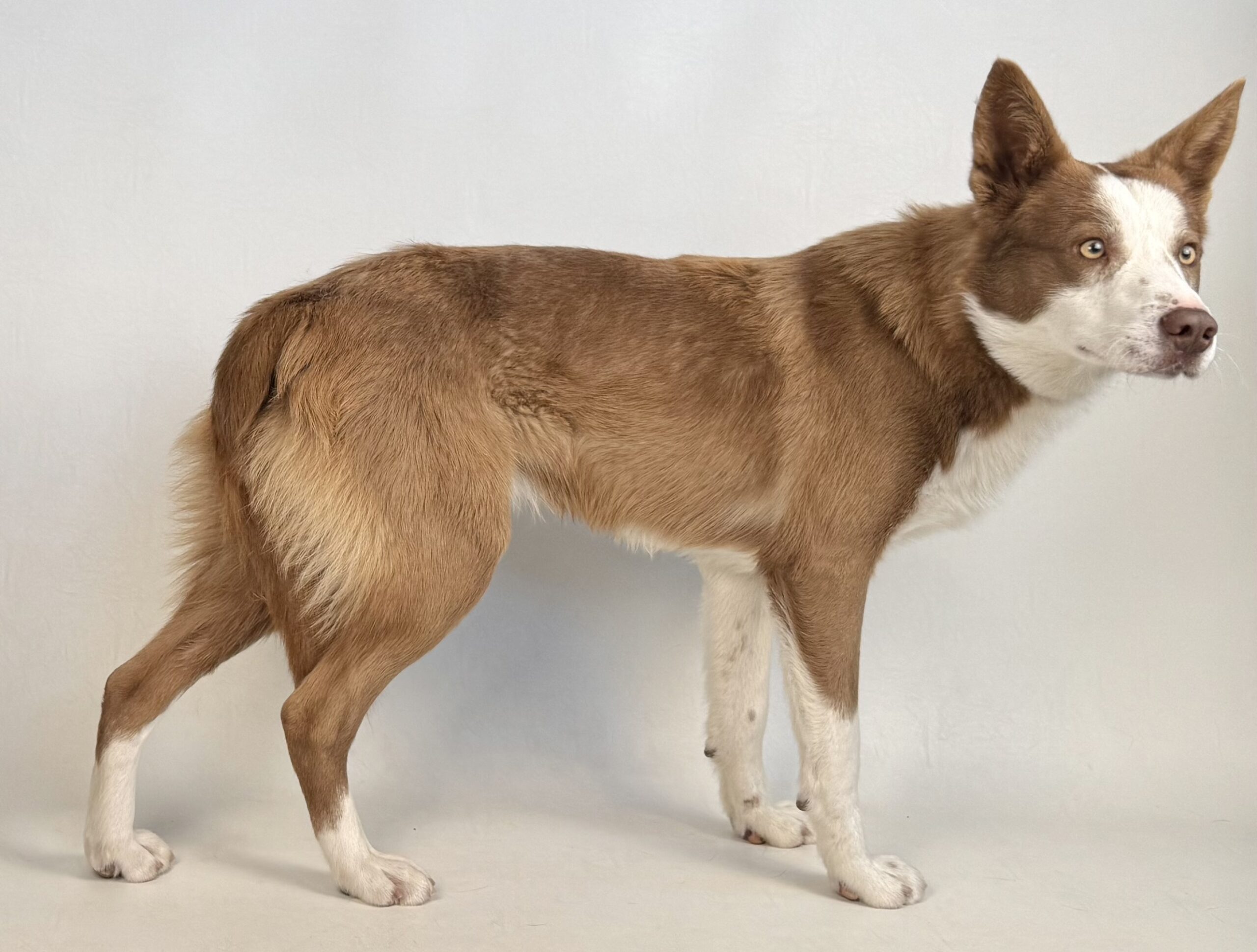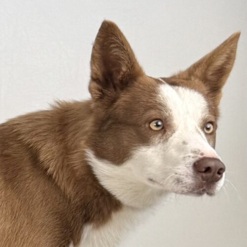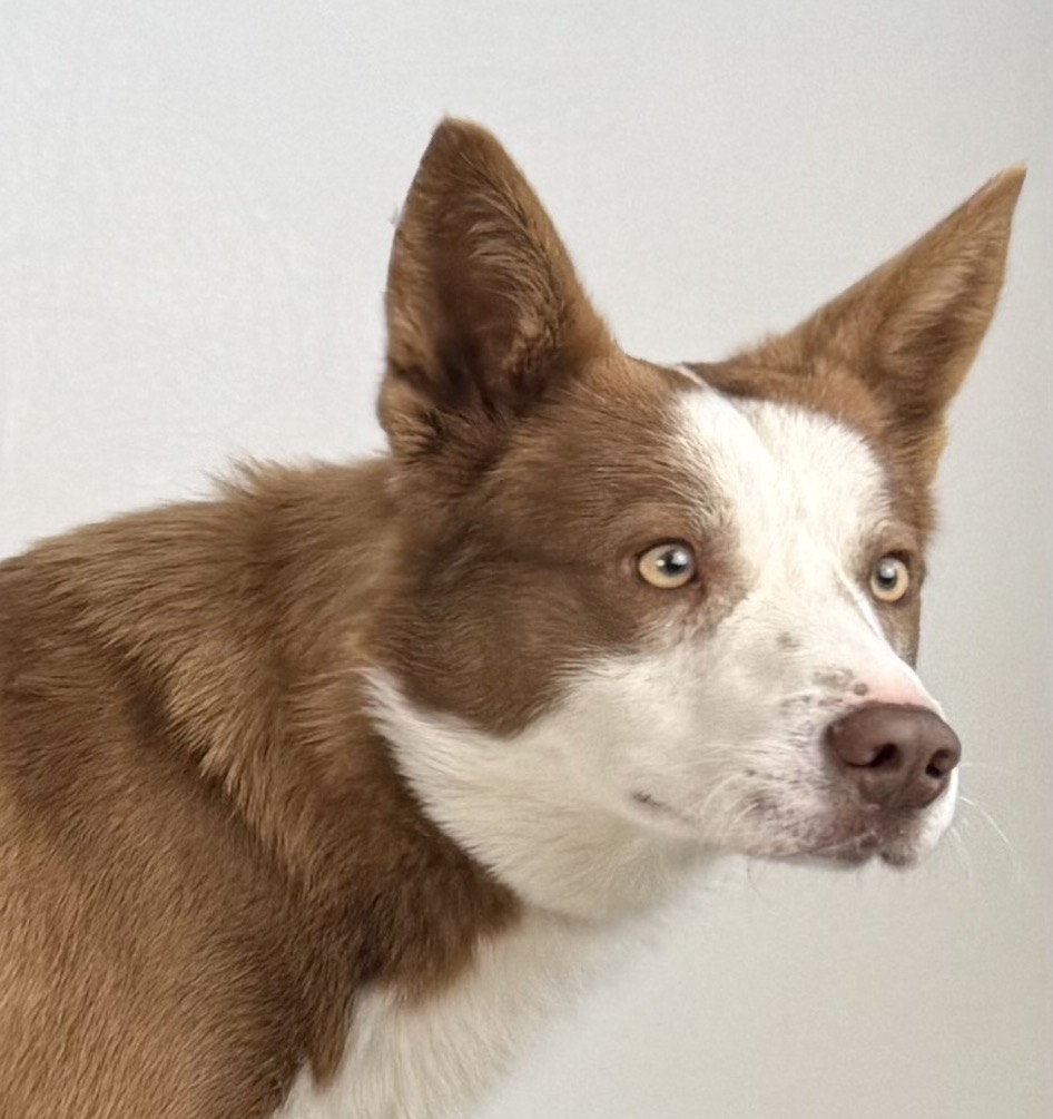 PENDING ADOPTION - Hammer is a handsome red-and-white male Border Collie, about a year old and weighing in around 40 pounds. He’s a young dog with a big heart and an even bigger work ethic. Though still green on commands, Hammer already shows strong natural ability—he’ll trail cattle all day long without quitting, proving he’s built for ranch life and wide-open country.