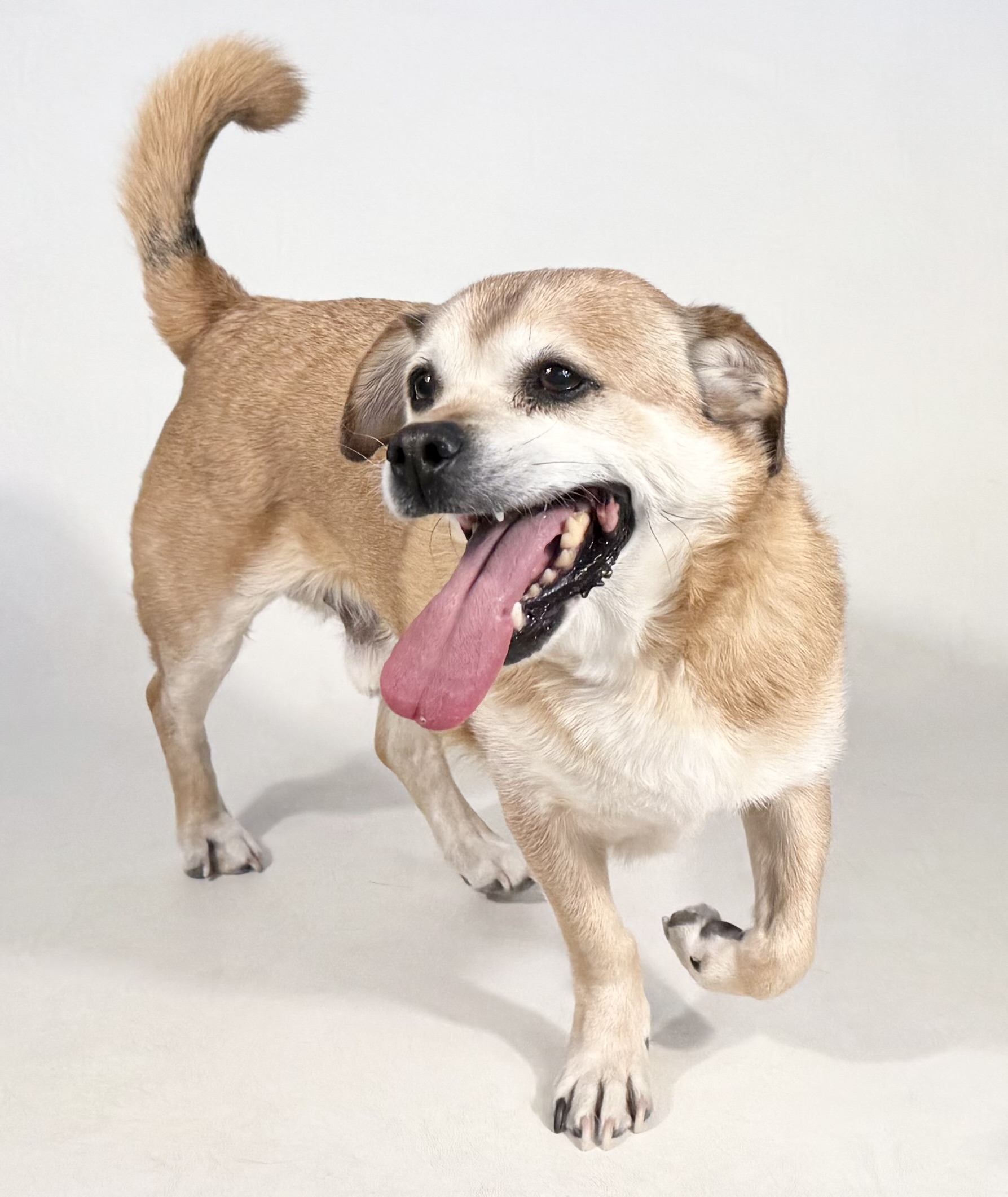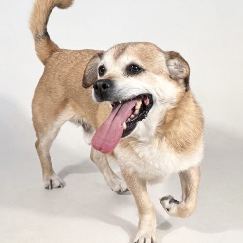 Jake is a sweet 13-year-old Corgi–Pug mix who found his way to the shelter through no fault of his own—his owner’s health made it too difficult to care for him. Despite his age, Jake still has plenty of love to give and a big heart full of affection.