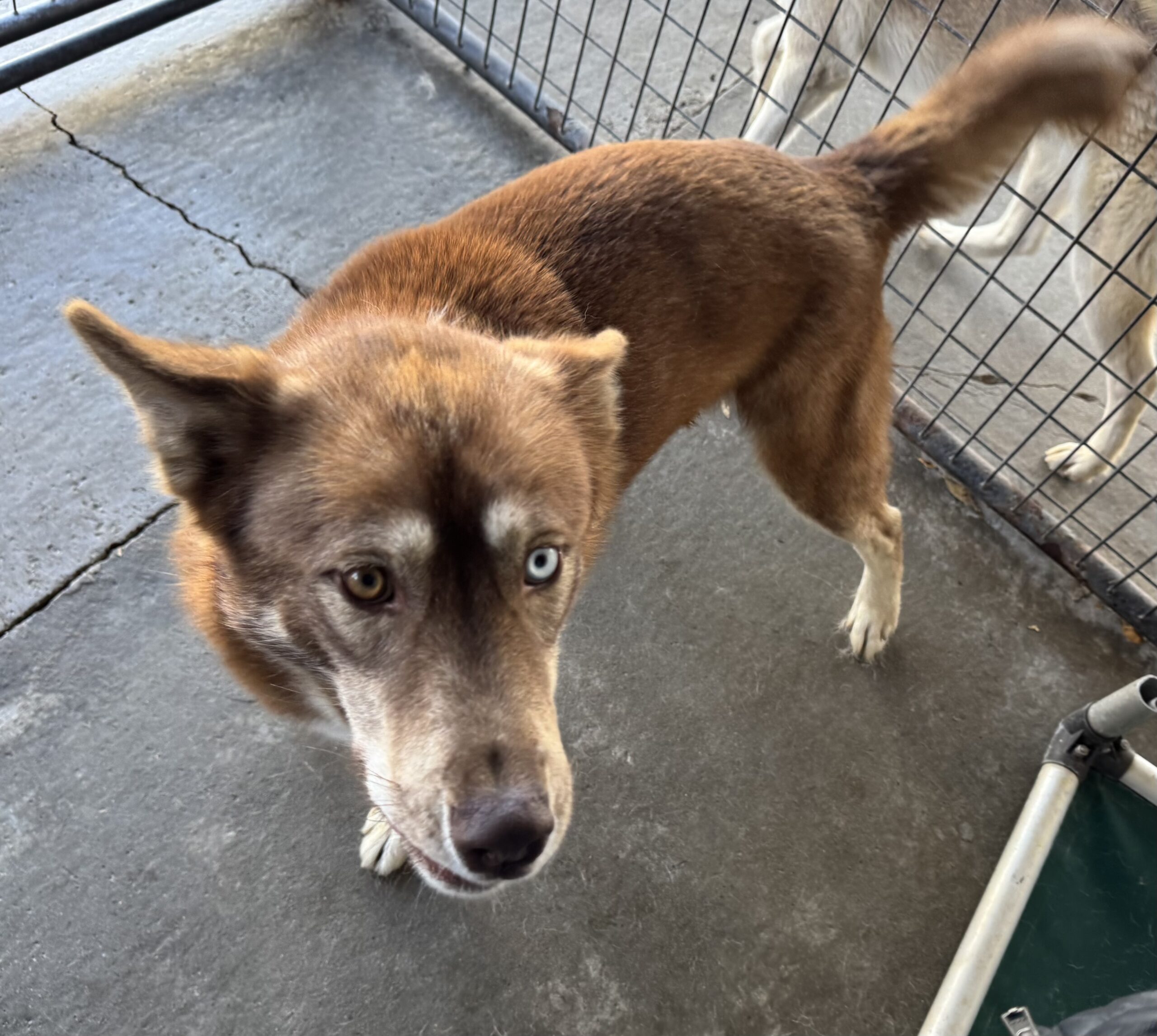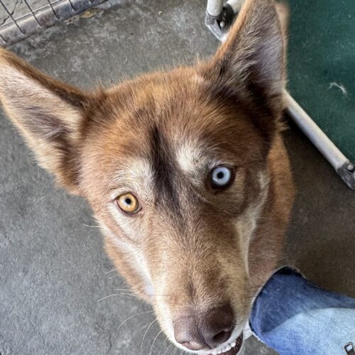 Lucky is a striking red and white Siberian Husky with stunning eyes that will melt your heart. Weighing in at around 60 lbs. and about two years old, he's the perfect mix of youthful energy and growing maturity. Playful, spirited, and full of personality, Lucky loves to run, explore, and make new friends—both human and canine. With his gorgeous coat and charming demeanor, he truly lives up to his name!