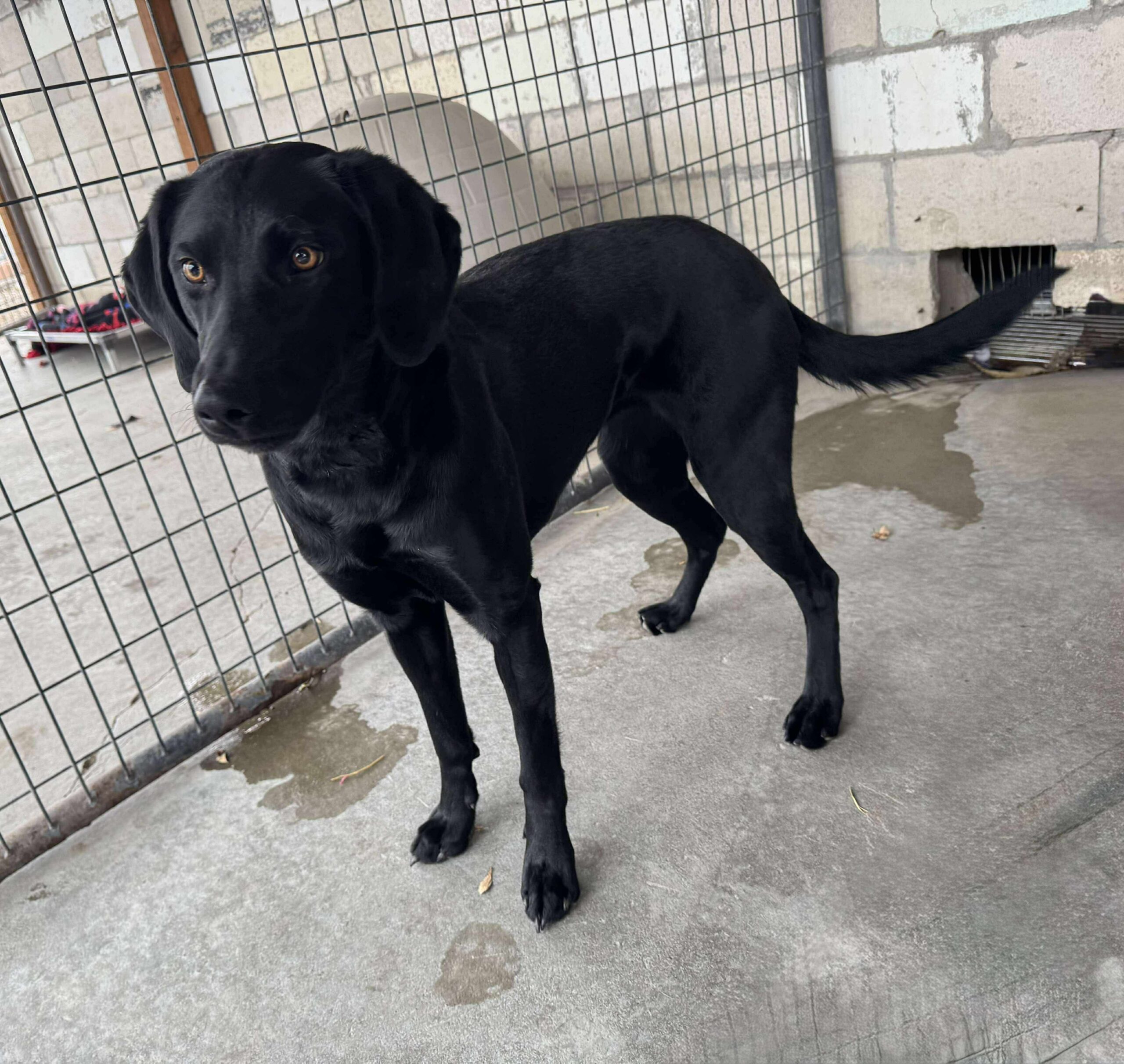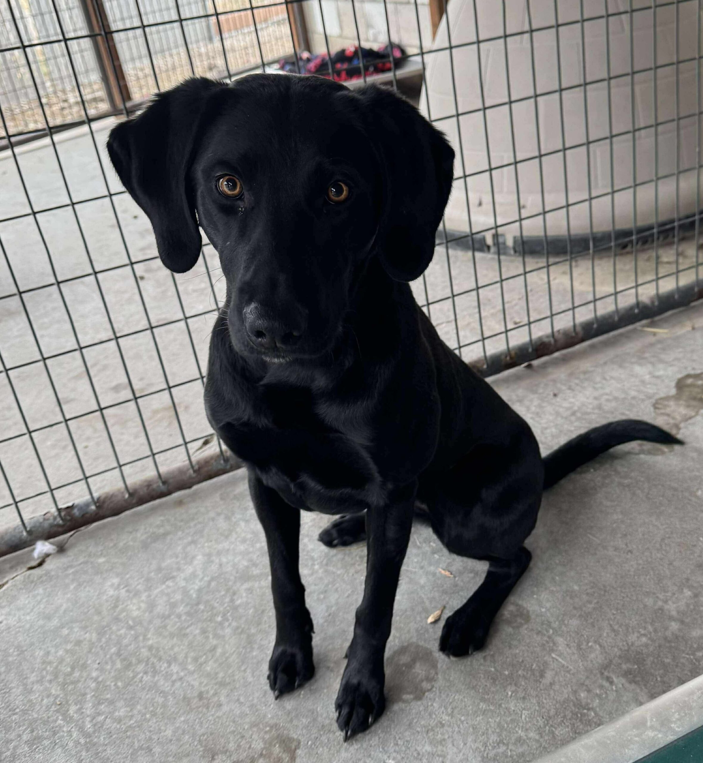 This beautiful black Lab/Pointer mix is just under two years old and has a heart as big as her smile. She is friendly with absolutely everyone and just about everything she meets! She does great with other dogs and cats, making her a wonderful addition to a multi-pet home.