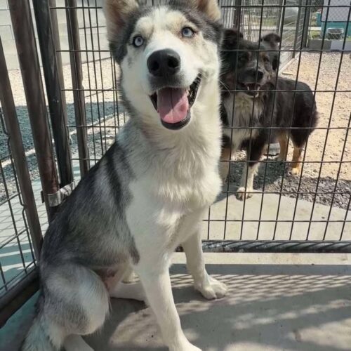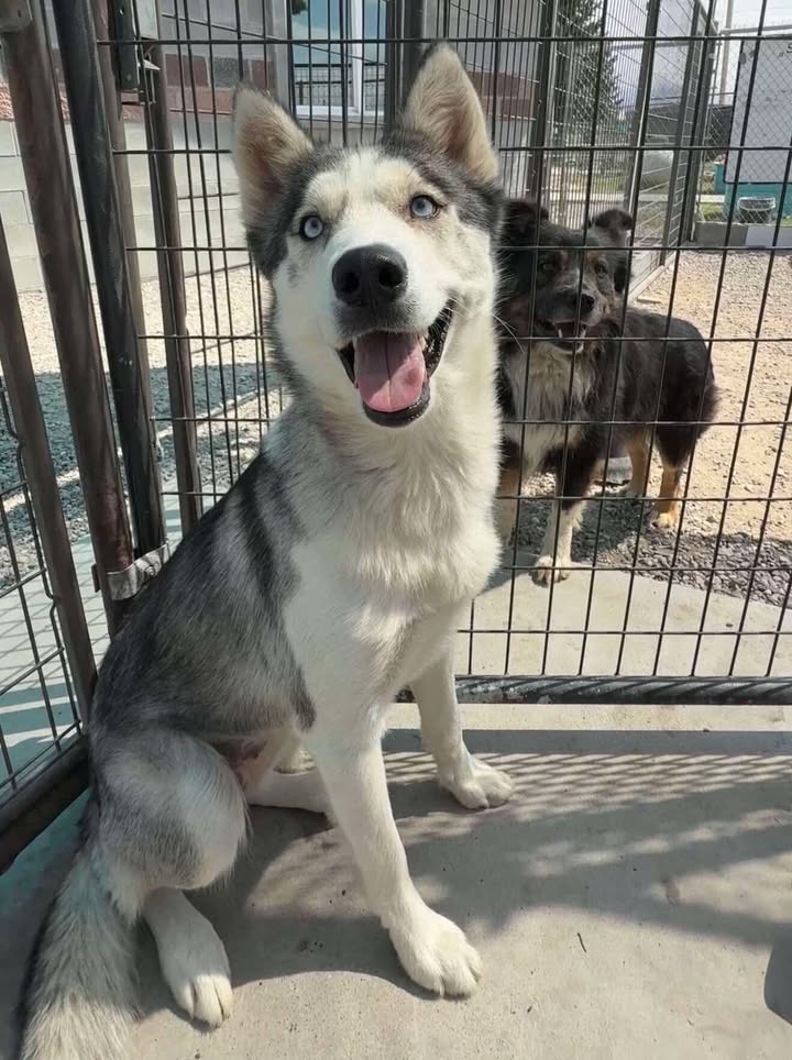 Molly is a gorgeous young Siberian Husky who came to us as a stray who was never claimed. She is a lovely little husky weighing around 50lbs. She is a bundle of love and energy with the sweet husky chatting skills! She is estimated at around a year old and will be available for adoption as soon as she's spayed. She's up to date on all vaccinations and dewormed. She is very playful and loves other dogs. She is a real sweetheart---has won the hearts of all our staff. She's great on a leash and went on a great long run with one of our volunteers. She keeps her indoor overnight kennel spotless and waits to potty until she's let out in her yard in the morning---so we're pretty confident that she's housetrained. She's not an escape artist--she doesn't jump fences or dig holes or jimmy the latches (like a few of our other guests do!!).