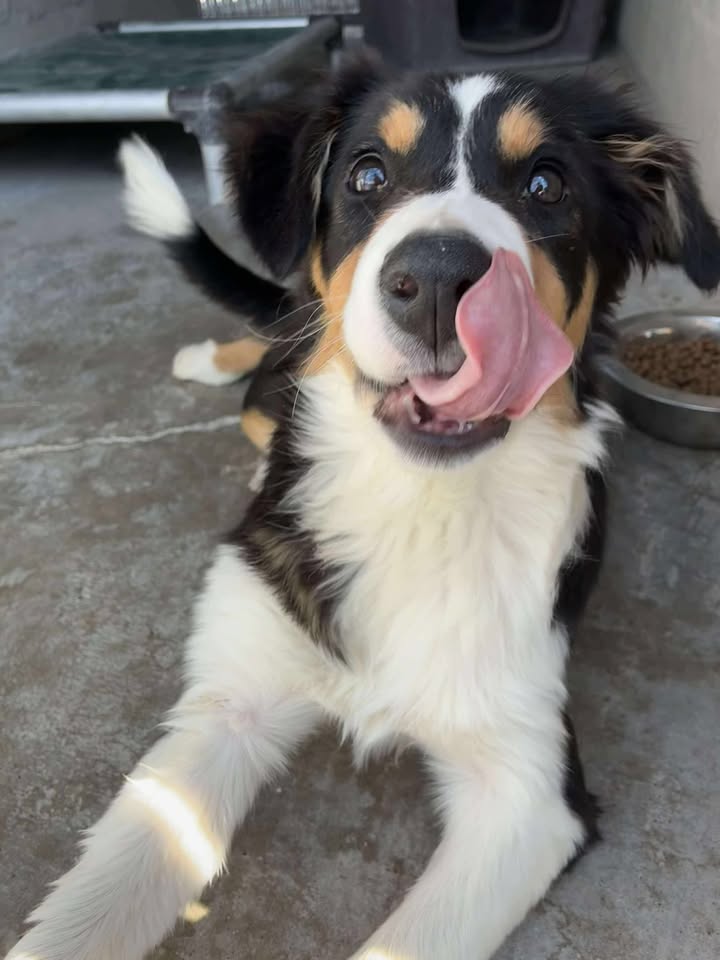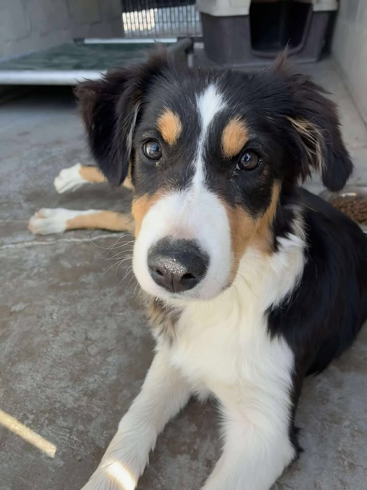 Moxie is a cute little border collie/aussie mix who is available for adoption now. She can go home after her spay. She is learning to walk on a leash, she loves people and other dogs. She is playful and has a sweet disposition. She doesn't bark much and isn't a digger.
