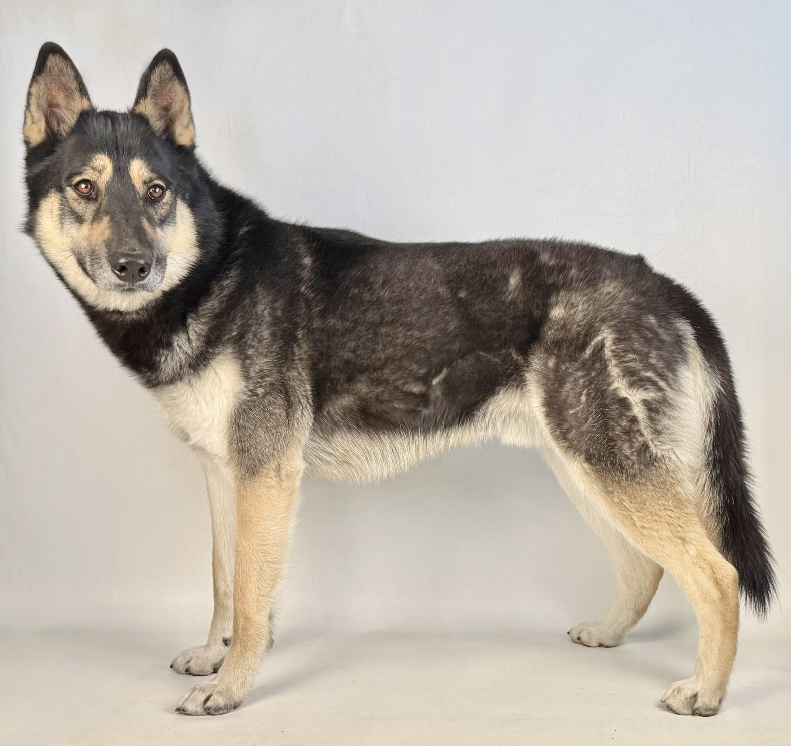 Rambler is a sweet dude!  He will instigate problems with other dogs through the fence and has asserted dominance with dogs, both male and female. Does well will older children (energy might be too much for small children).  Very sweet friendly dog, with strangers and friends alike.  He tends to get nervous around farm animals and barks at them.  He walks nicely on a leash.   He can be unsafe with smaller animals including cats (activates his prey drive).  Rambler is quiet; he has shown very little barking since he's been here.  He does not jump fences.