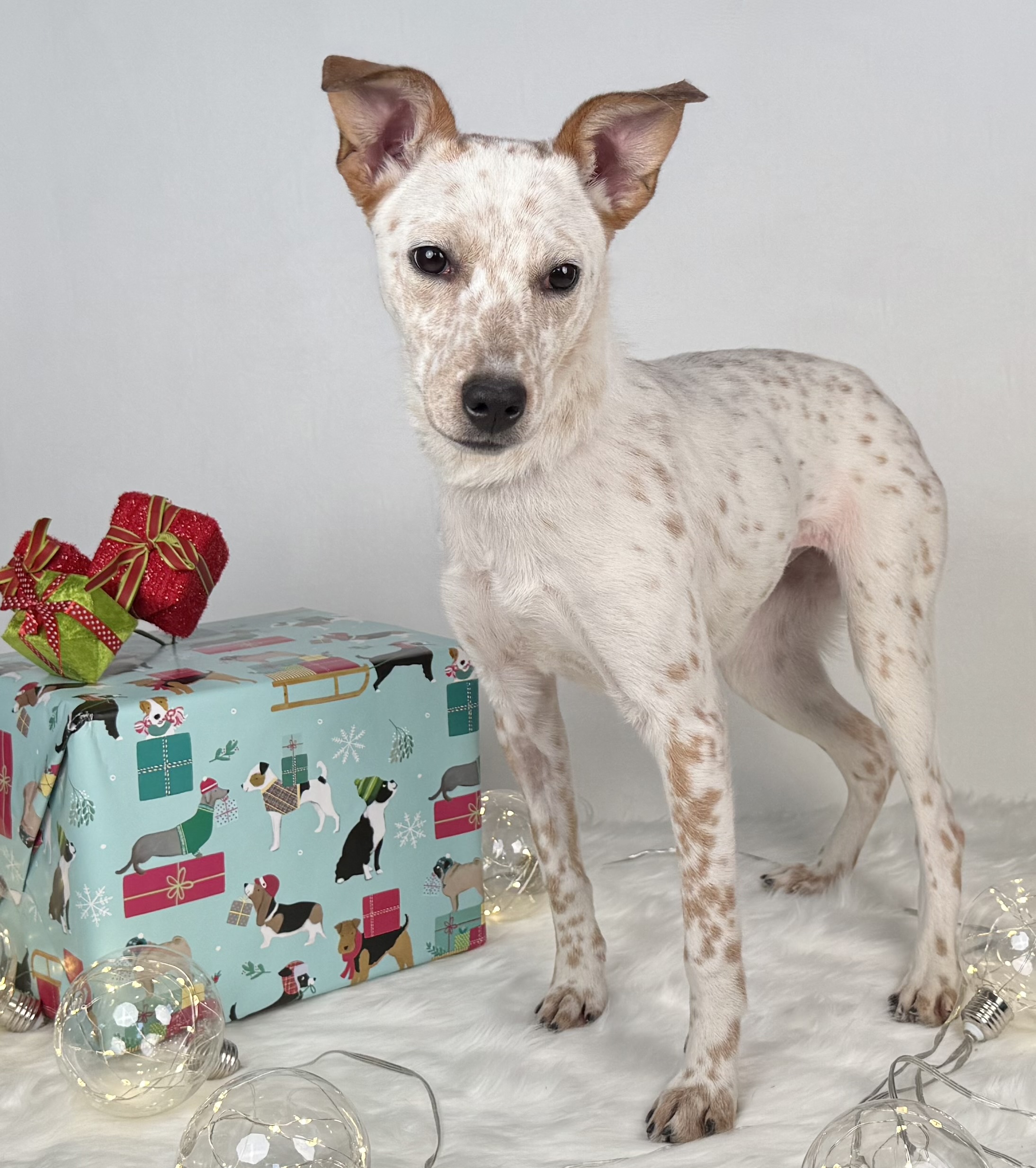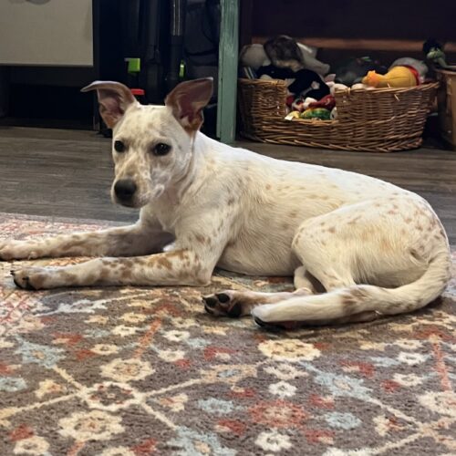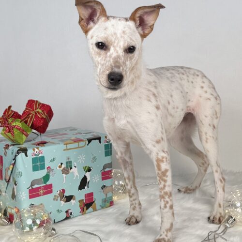 Pixie is a shy, sweet young mutt with possible heeler mix. Great with dogs and cats, no aggression, just gentle, lovable charm.