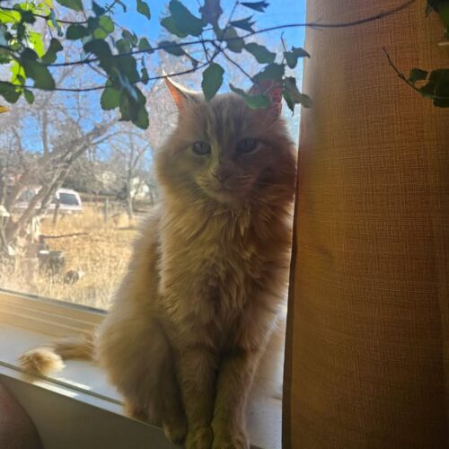Golden is a spayed, long-haired orange beauty estimated to be around 3 years old—and yes, orange females are extra special and not very common! She’s incredibly friendly and people-oriented, with a soft, affectionate personality that makes her a joy to be around. Golden absolutely loves kids and thrives on human attention.