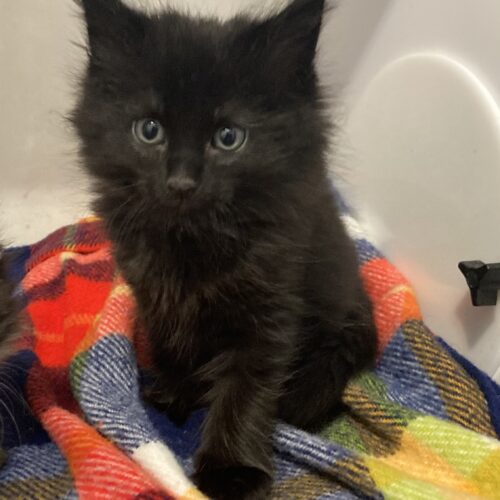 Say hello to Mitzi, an adorable 8-week-old black Maine Coon/Domestic Long Hair mix with the fluffiest coat and the sweetest personality! She’s still just a baby and will need to be spayed and brought up to date on her vaccinationsbefore she’s ready for adoption.