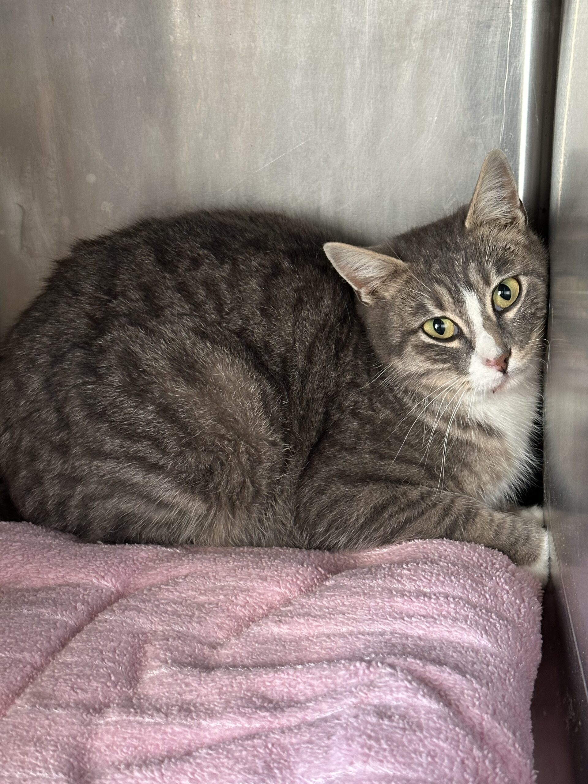 Hi, I'm Trapper! I earned my name after a comical game of cat-and-mouse with the shelter's most patient catcher. Imagine this: a bustling town square, me darting under benches and through picnic legs, and a catcher with a net tripping over his own feet! After a dizzying chase, I finally darted straight into an open carrier they'd cleverly disguised with treats. Got me! Despite my shy and independent nature, I've got a loving side that's just waiting to shine in a cozy home. Right now, I'd be best suited as a professional mouser.