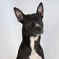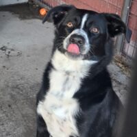 Happy is a sweet black and white Pitbull mix, underweight but loving, needing special care and nutrition to regain health.