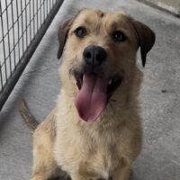 Energetic, fawn-coated 1.5-year-old Pitbull/GSP mix seeking active home with tall fence and attentive owner to enjoy her adventurous spirit.